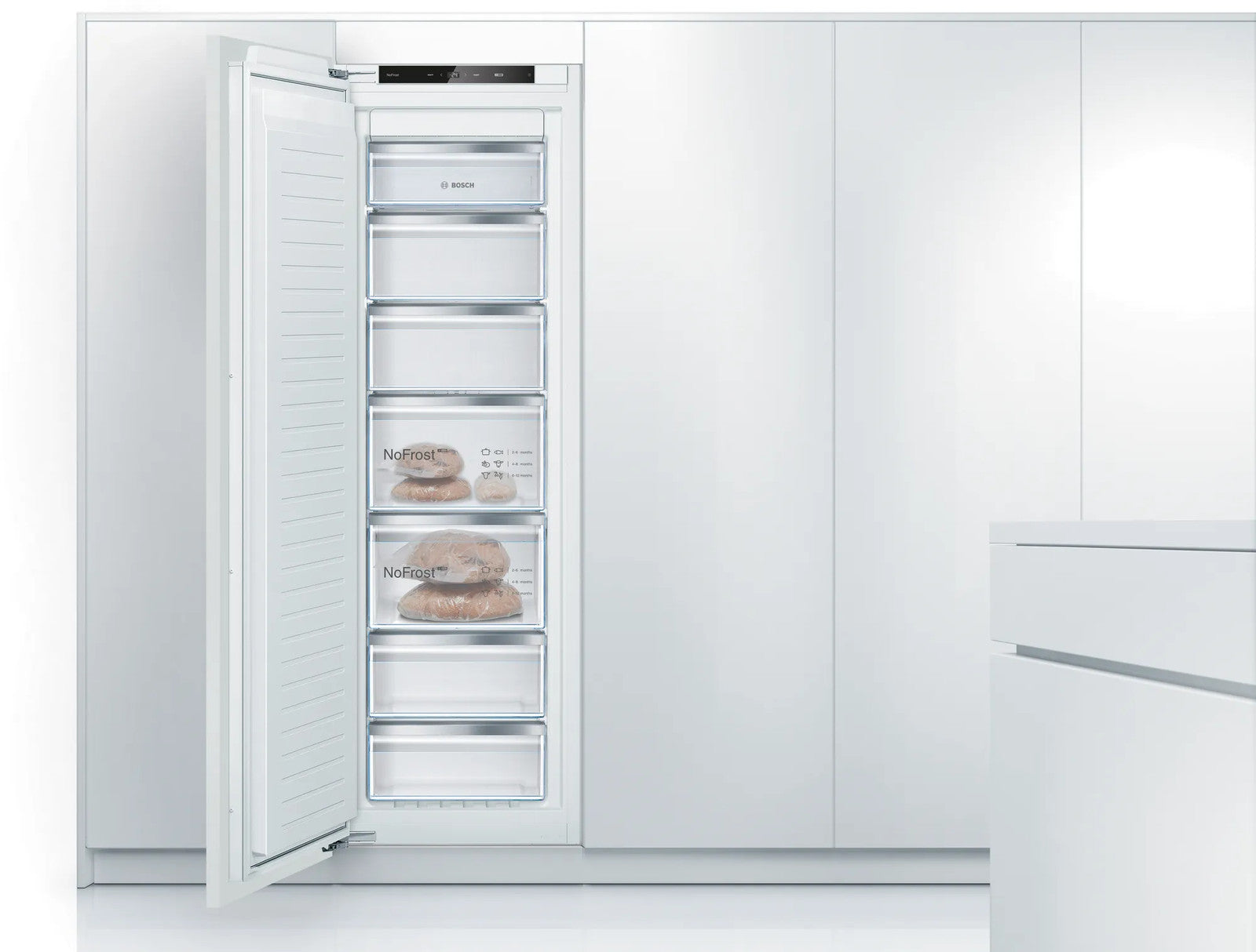 - This NoFrost built-in freezer needs no defrosting and features a malfunction warning signal in case of increasing temperature.