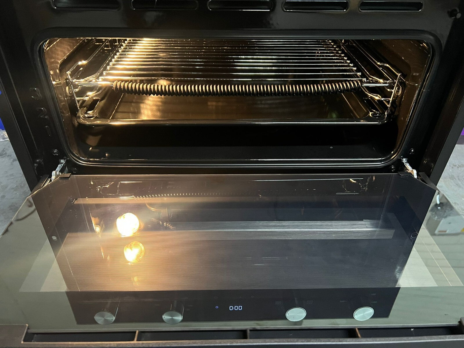 - This oven comes complete with shelves, baking trays and a trivet, so you can start cooking right away